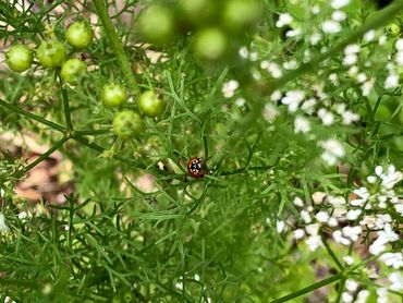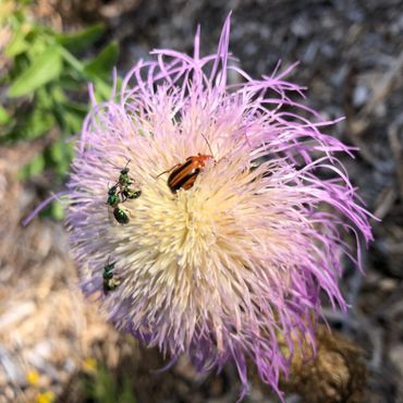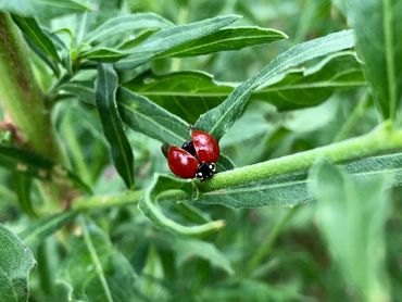 The largest insect group, many species in order Coleoptera pollinate plants. Ladybugs, a type of beetle, are natural pest control of aphids and other plant-feeding insects.