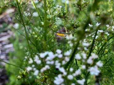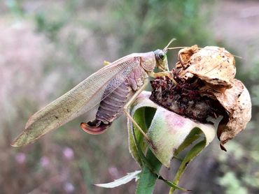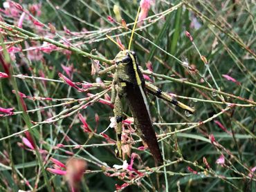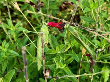 Grasshoppers, katydids, and crickets are common visitors to the garden, providing a natural serenade no matter the time of day.
