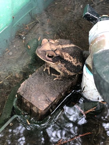 Please be cautious when walking through the garden or digging in the mulch pile as toads and lizards like to hide there.
